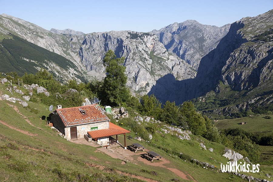 Desde el Colláu Valleju la senda continúa ascendiendo otros 400 m de desnivel hacia el Refugio J. Delgado Úbeda, situado en la Vega de Urriellu, a los pies de la imponente pared oeste del Picu. A nosotros en cambio solo nos quedará rehacer el mismo camino con el recuerdo aún impreso en nuestra retina de una imagen, tanto para grandes como para pequeños, difícil de olvidar.
